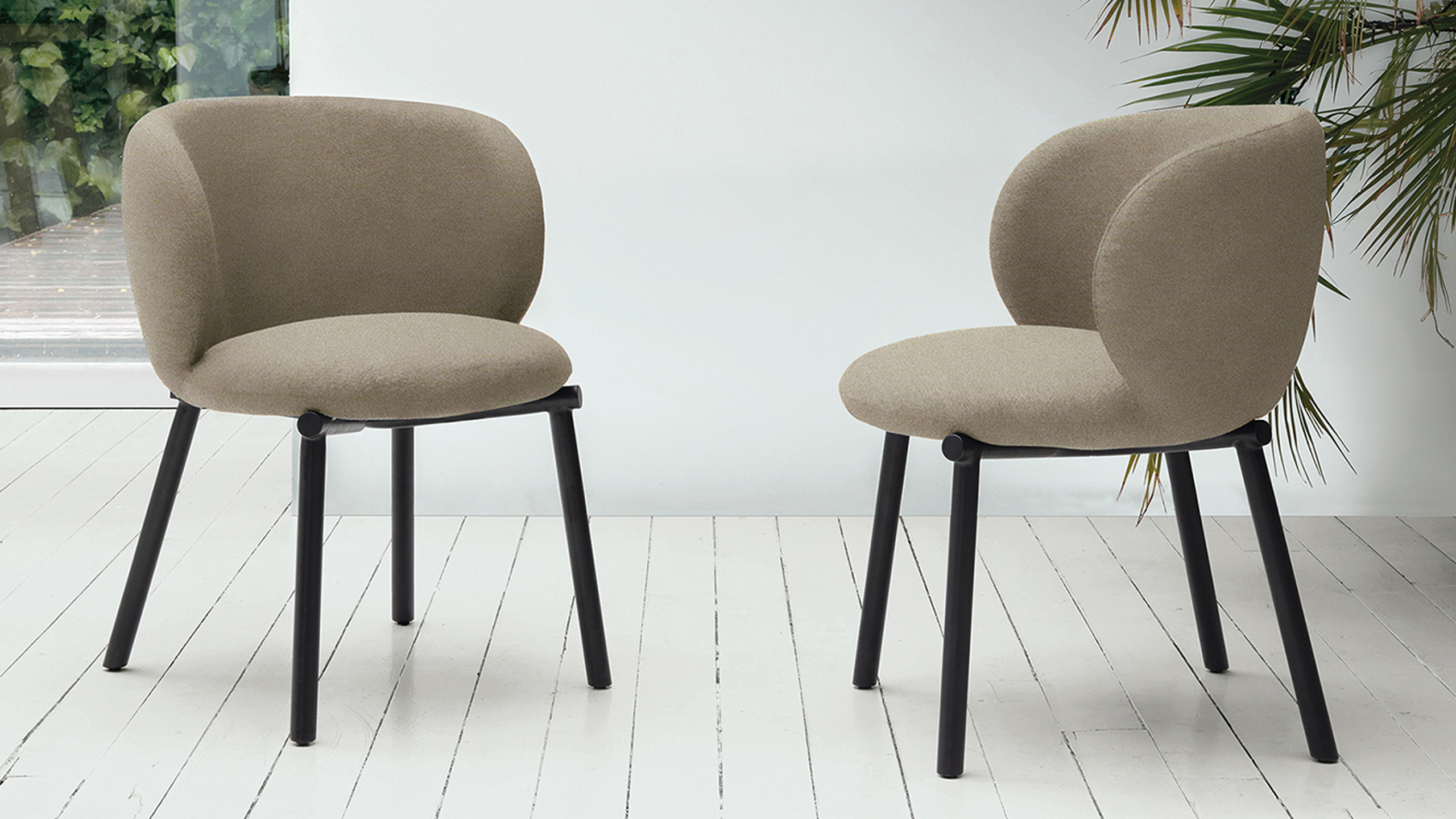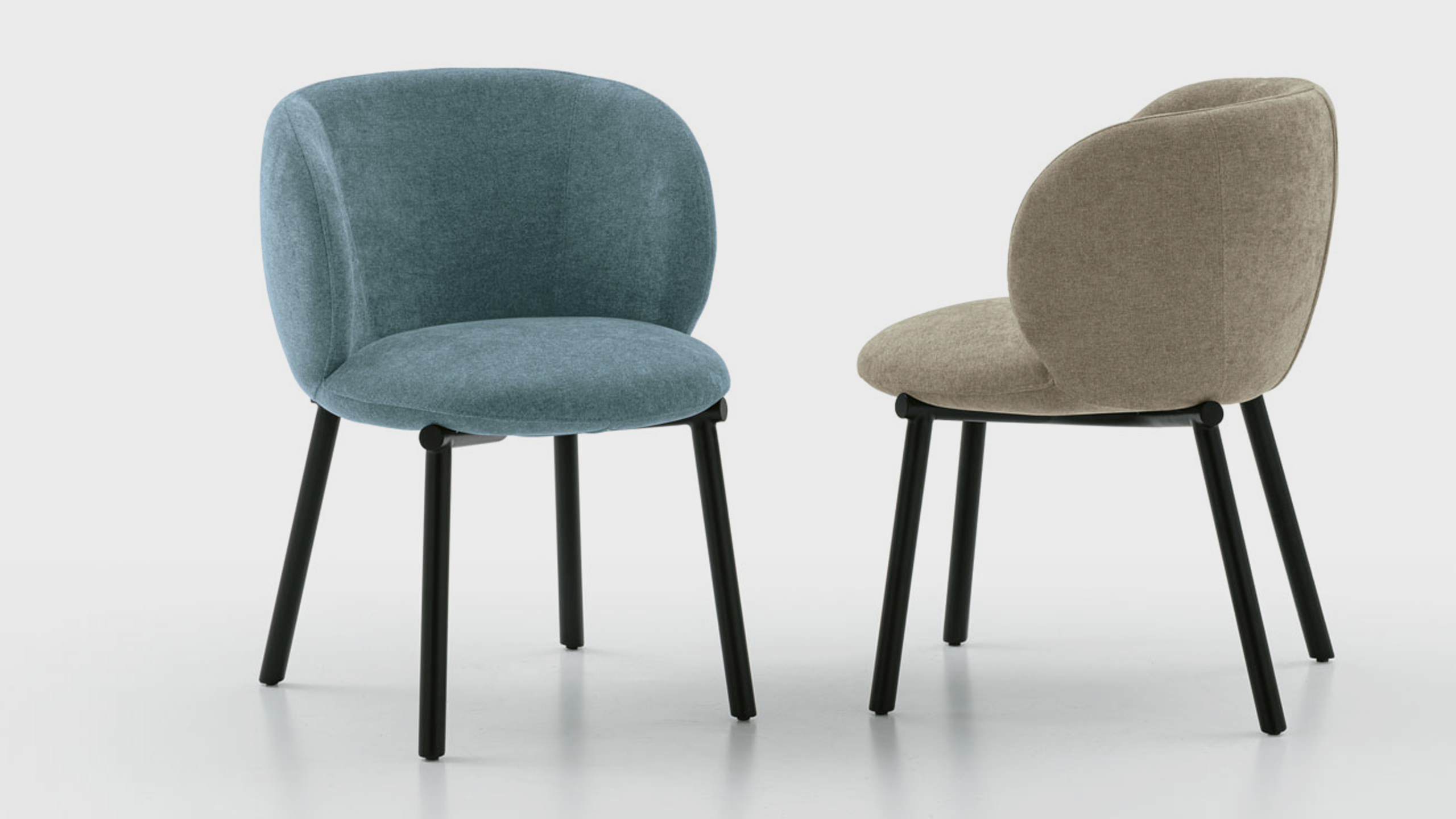 Japanese-style armchair with painted metal frame and padded seat. Available upholstered in soft Clean-Touch fabric or in the new Mellow Blend, soft and durable, enhancing the comfort of the enveloping seat.