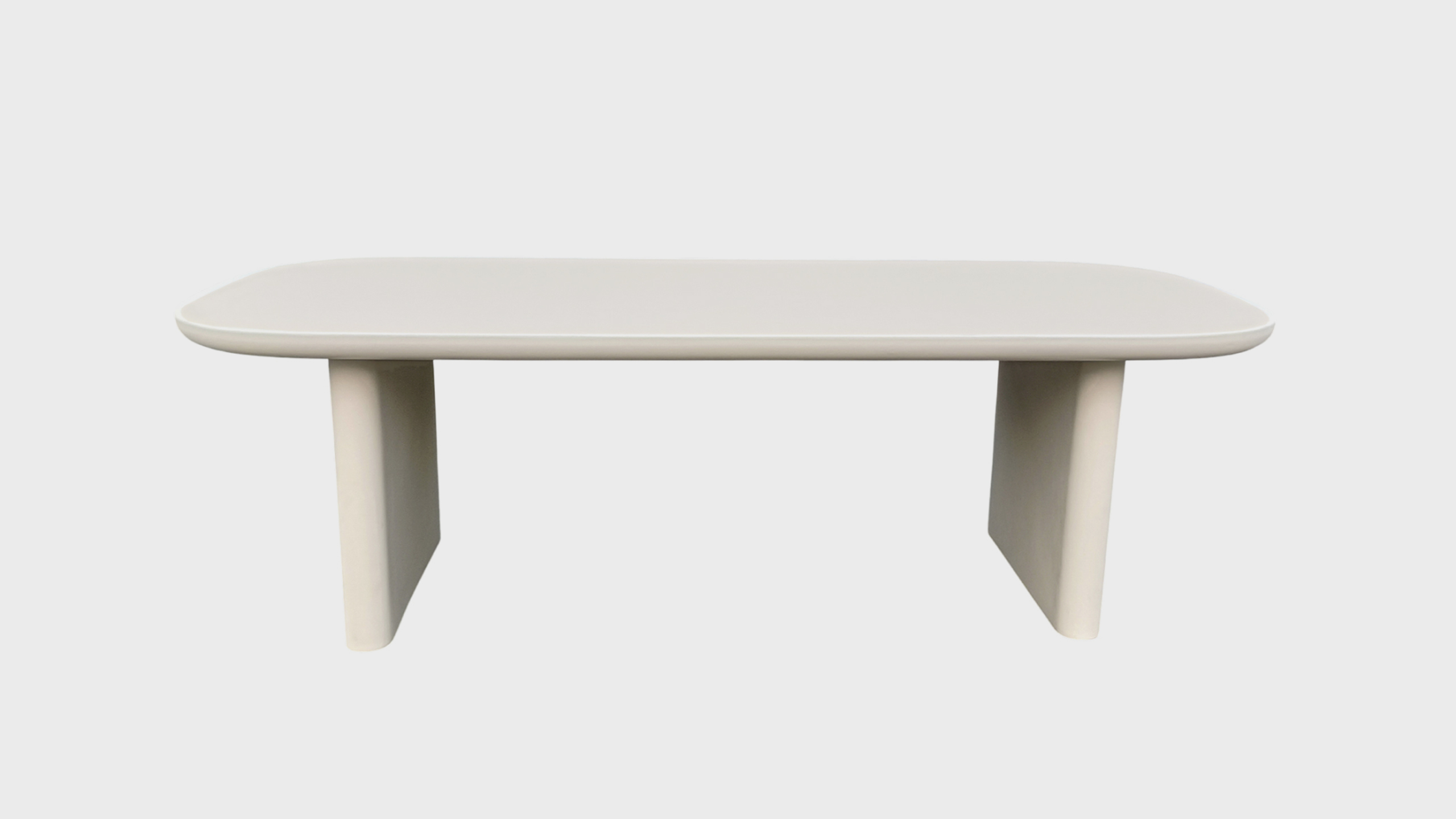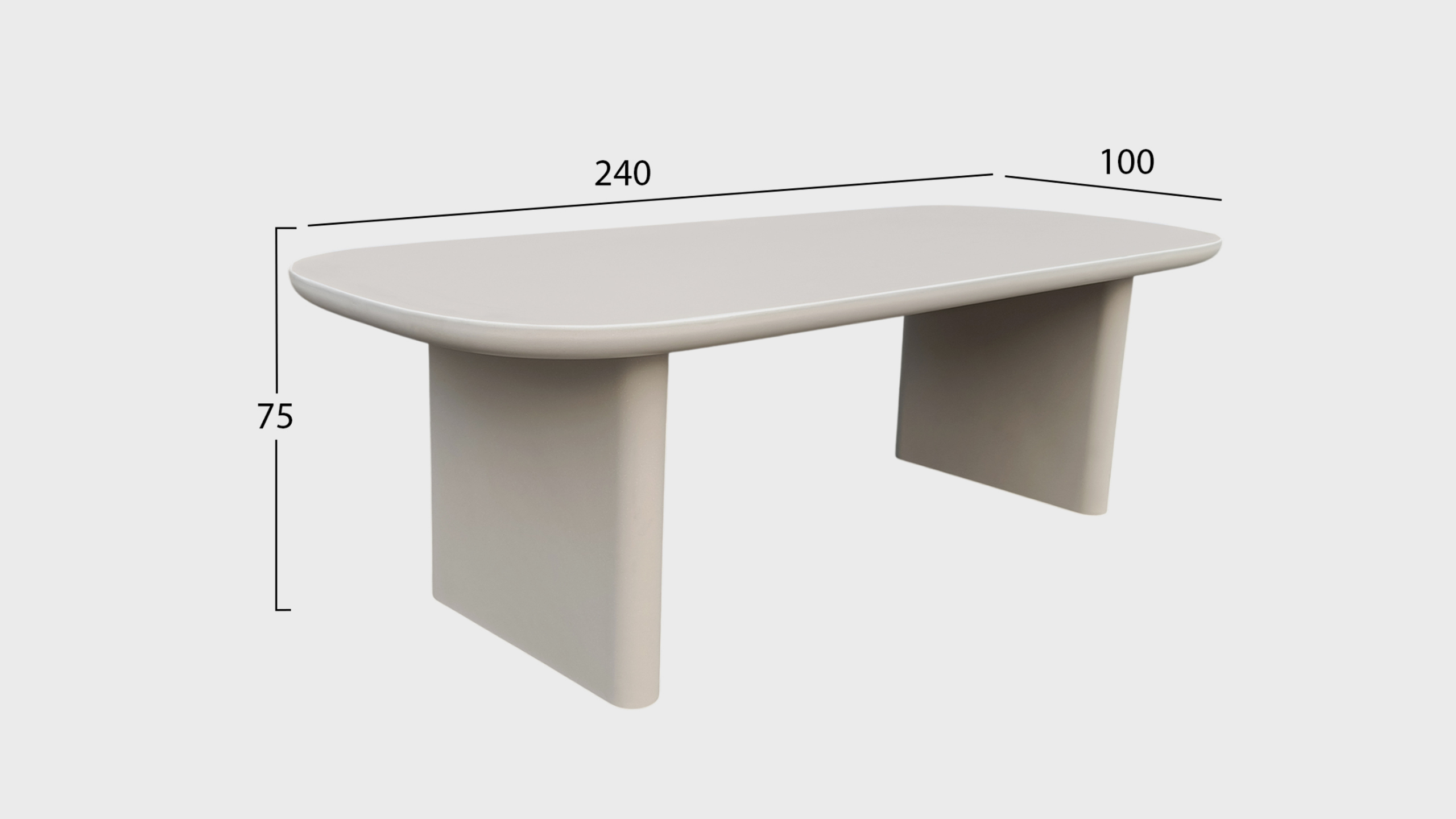 Τραπέζι εξωτερικού χώρου AZAMI με επιφάνεια και πόδια από FIBER CEMENT υψηλής αντοχής με φυσική υφή υλικού. Διατίθεται σε δύο χρωματισμούς: γκρι & μπεζ.
