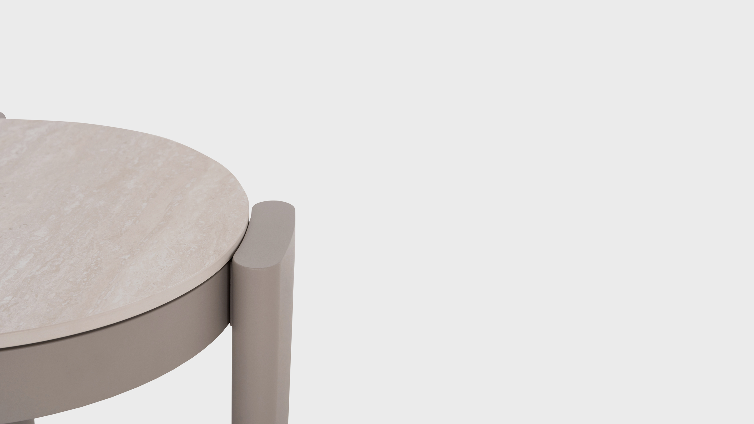 Βοηθητικό τραπεζάκι εξωτερικού χώρου BARON με σκελετό από αλουμίνιο βαμμένο με ηλεκτροστατική βαφή & κεραμικό top. Διατίθεται σε τρείς χρωματισμούς: σκούρο γκρι, χρώμα φυσικού ξύλου, μπεζ.
