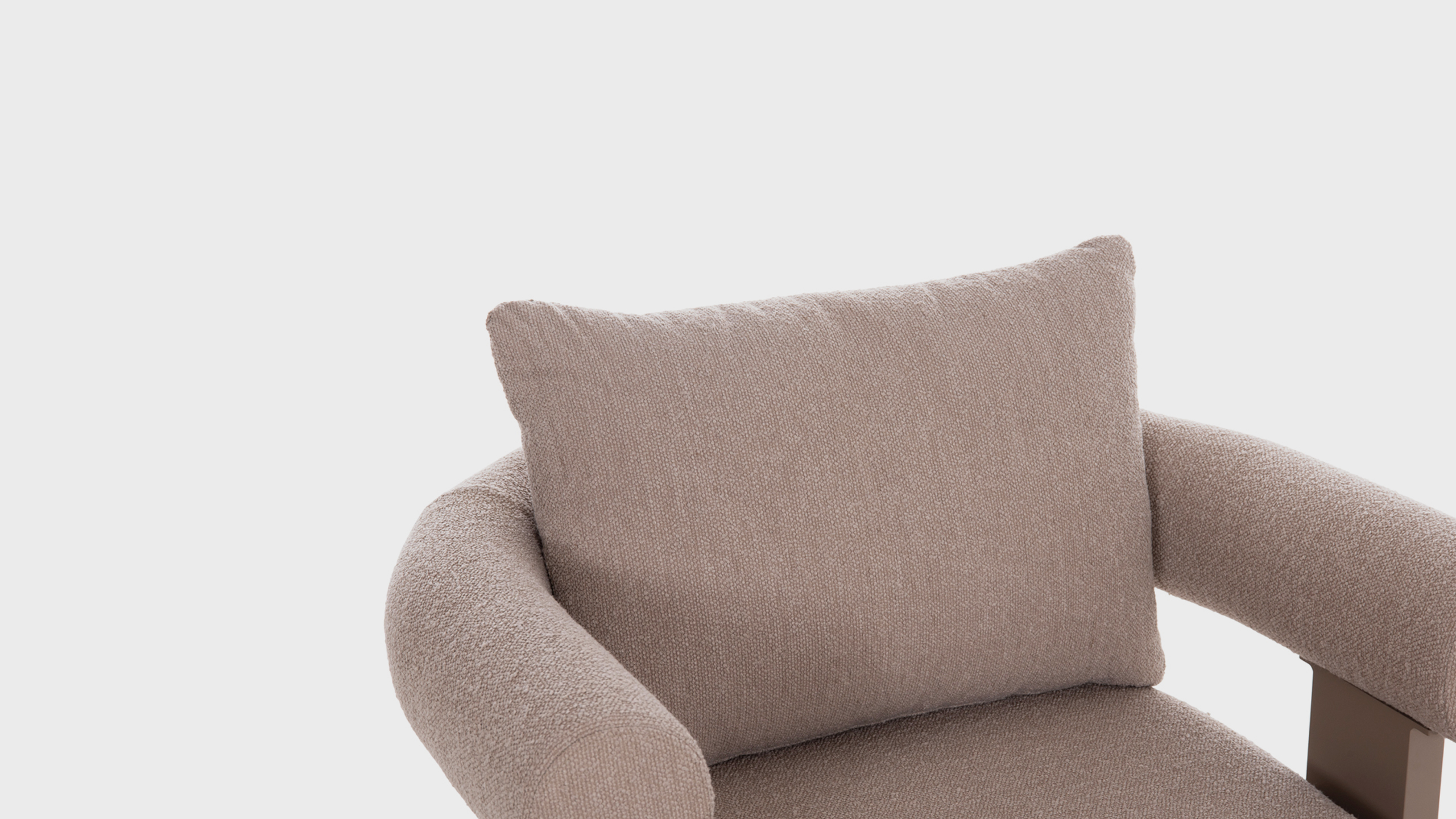 Καλύμματα μαξιλαριών: OLEFIN υδατοαπωθητικό (πολυεστερικό) ύφασμα, ειδικό για εξωτερική χρήση (με φερμουάρ για εύκολη αφαίρεση). Είναι αδιάβροχο και ανθεκτικό στους λεκέδες (αλέκιαστο).