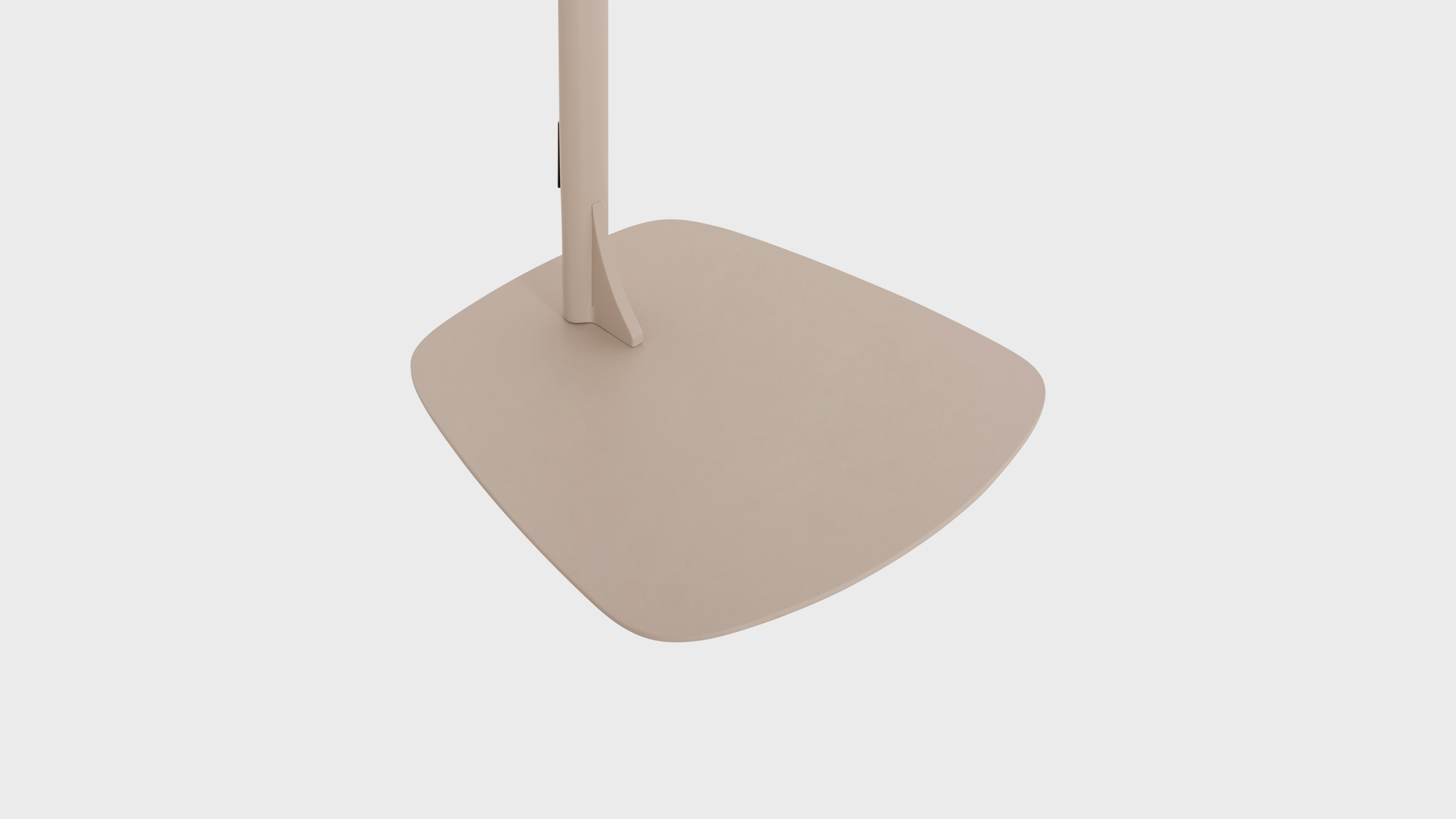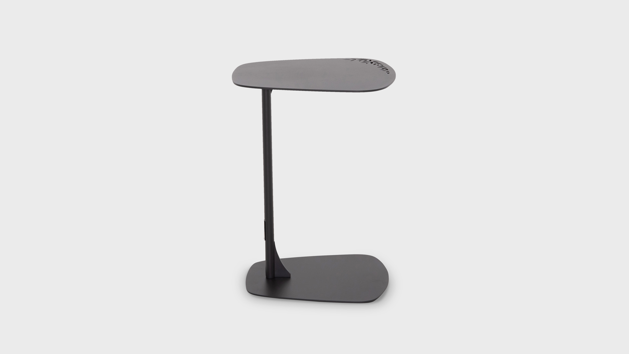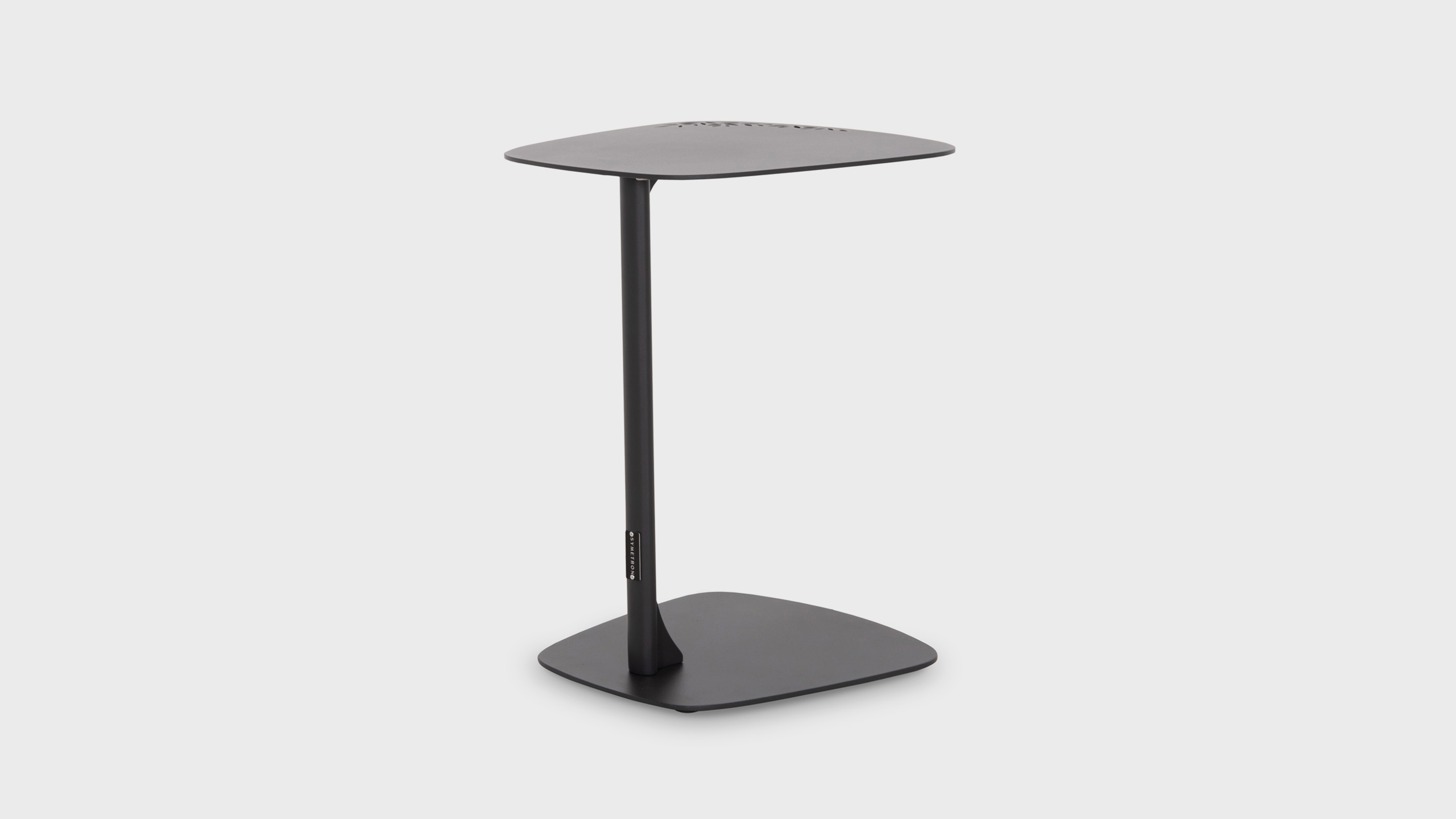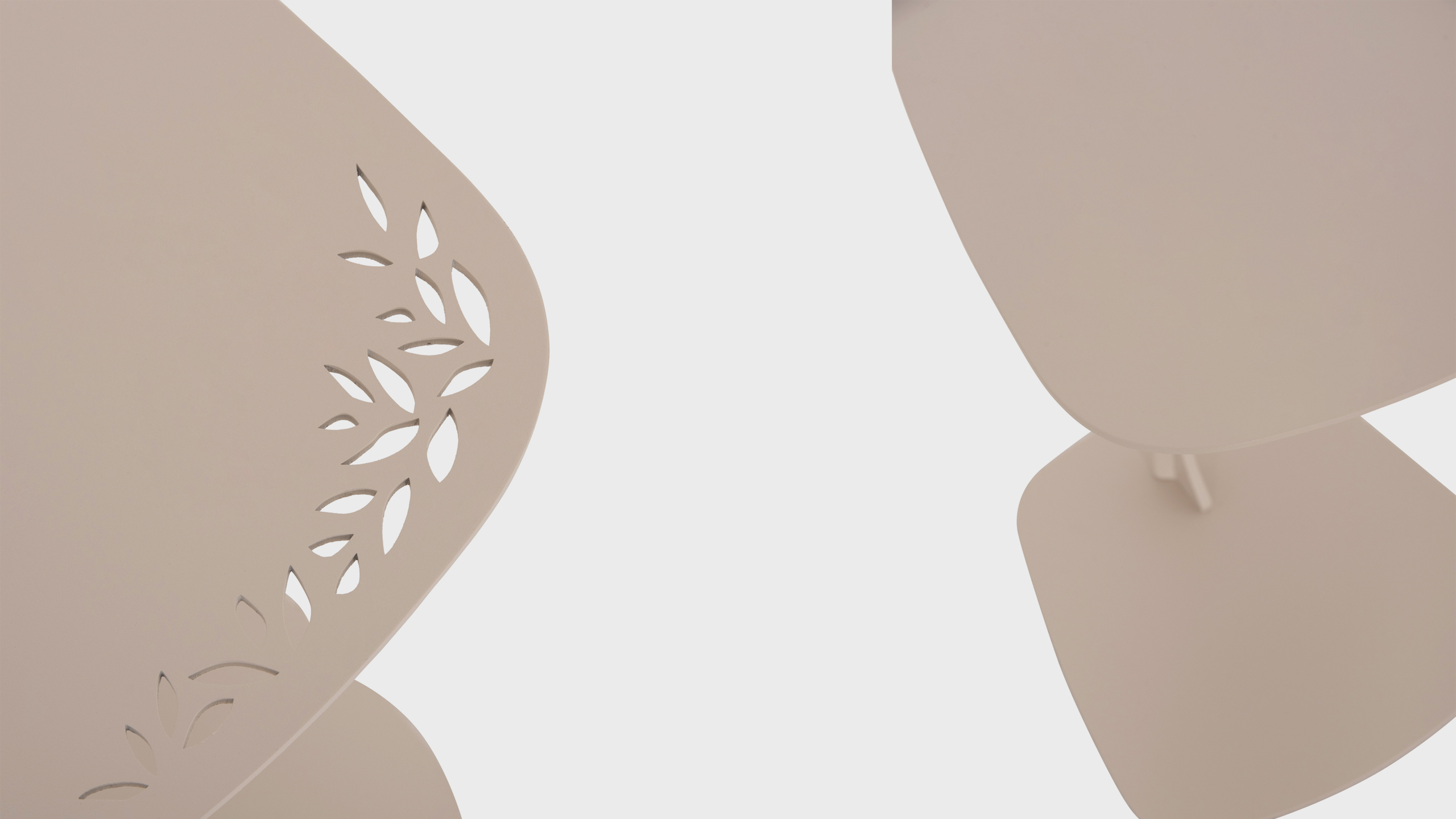 Τραπεζάκι εξωτερικού χώρου SOFFBORD με σκελετό εξ ολοκλήρου από αλουμίνιο βαμμένο με ηλεκτροστατική βαφή. Ξεχωρίζει το σχήμα τόσο της βάσης όσο και της επιφάνειας η οποία έχει σκαλιστό «τρυπητό» σχέδιο στην μία γωνία της.  Διατίθεται σε δύο χρωματισμούς: σκούρο γκρι & μπεζ.